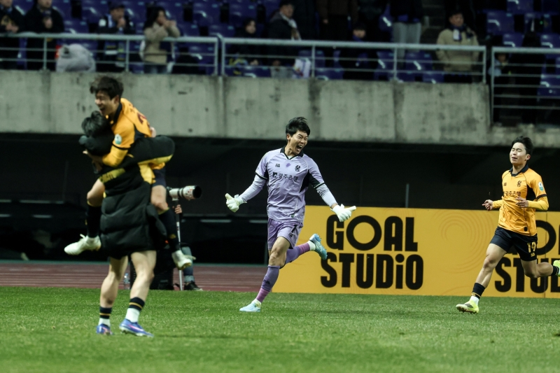 (Goalkeeper Kim Kyeong-min saves a penalty to secure Gwangju FC’s first win of the season. (Gwangju FC))